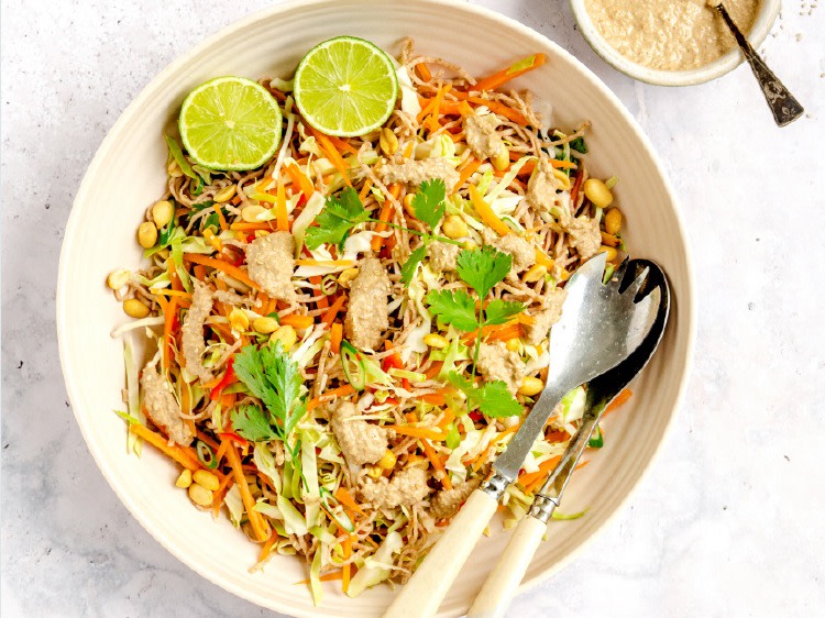 Asiatisk salat med nudler og hjemmelavet gomadressing