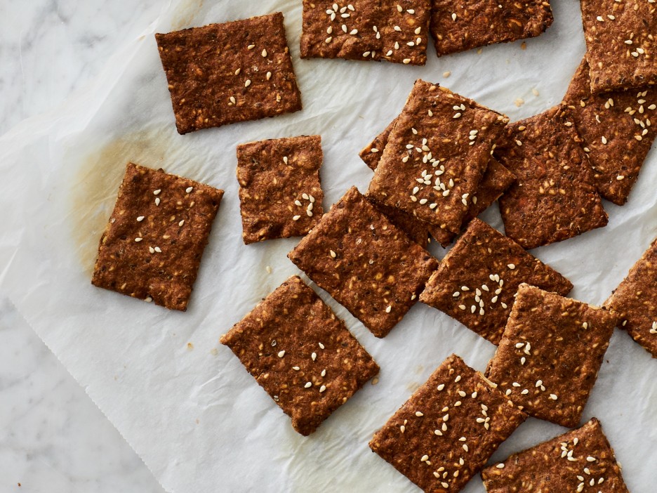 Bag knækbrødene i en forvarmet ovn ved 200°C i ca. 20-25 minutter, til knækbrødene er gyldne.