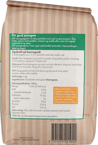 | Varenavn | Økologiske finvalsede havregryn |
