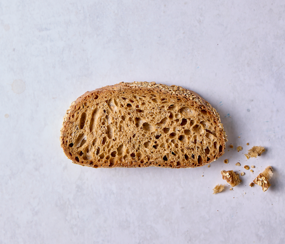 HVEDEMEL, crimpede HVEDEKERNER, RUGSIGTEMEL, palmeolie (RSPO certificeret), salt tilsat jod, HVEDEGLUTEN, karamelsirup, mørk ristet BYGMALT, glukosesirup, rapsolie, majsstivelse, emulgator (E472e) vegetabilsk, melbehandlingsmiddel (E 300, enzymer (amylase, xylanase)).
