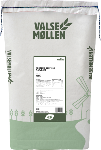 Proteinbrød 100/0 NaturAks er en helblanding til bagværk med et højt indhold af protein og fuldkorn – det gode valg for dem med fokus på sund livsstil og gode kostvaner. Fødevarestyrelsen anbefaler 90 gram fuldkorn om dagen og gerne mere som en del af en varieret kost. Produktet indeholder 34 g fuldkorn pr. 100 g brød, når det tilberedes efter vejledningen på emballagen. Produktet er mærket NaturAks® din garanti for, at kornet er dyrket uden brug af stråforkorter og nedvisningsmidler