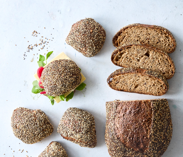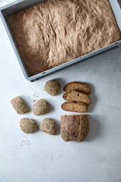 Opskrift til 10 brød á 600 g | 43 burgerboller á 150 g | 65 håndværkere á 100 g: