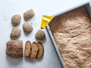 Opslåning: Brød: Slås op som aflangt brød, vend i dekoration og kommes i aluform. Håndværkere: Afbrækkes som håndværkere, stryges med vand og vendes i dekoration. Burgerboller: Slås op som burgerboller, vendes i dekoration og kommes i flexipanmåtte eller aluform.