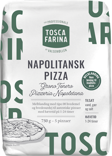 Tosca Farina Napolitansk Pizza. En melblanding med tipo 00 hvedemel og hvedesurdej til autentiske pizzaer med hævetid på 1-24 timer. Tosca Farina Napolitansk Pizza er en melblanding til pizzabunde inspireret af autentiske, italienske pizzaer med den karakteristiske, sprøde skorpe fyldt med flotte lufthuller og lækker surdejssmag. Forkæl familien eller venner med napolitansk pizza på en hverdagsaften eller til hyggelige middage i weekenden. Afhængig af hvor lang tid du har til din pizzabagning, kan du vælge at lade pizzadejen hæve mellem 1 time til 24 timer. Jo længere hævetid, desto mere smag og sprødhed i de færdige pizzaer. Vi har opskrifterne klar til dig her. Du skal kun tilsætte gær, salt og vand. Melblandingen giver 5 pizzaer.