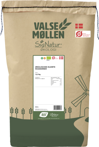 Økologiske klemte, dampede og tykvalsede kerner, som kan tilsættes rug- og hvededeje. Kernerne kan tilsættes direkte i dejen uden iblødsætning. Økologiske klemte rugkerner er fra danske økologiske marker og forarbejdet på egne møller i Danmark. Fødevarestyrelsen anbefaler 90 gram fuldkorn om dagen og gerne mere som en del af en varieret kost. Produktet indeholder 100 gram fuldkorn pr. 100 gram. Valsemøllen Signatur® er grundstenen i godt bagværk. Serien består af et bredt sortiment af dansk og økologisk mel, gryn, specialmel og melblandinger, der sikrer lækkert, vellykket bagværk – hver gang. Det er produkter af allerhøjeste kvalitet, der er dyrket efter økologiske principper og malet på en af vores tre danske møller.