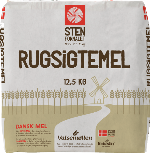 Valsemøllen Stenformalet Dansk Rugmel er mærket med Dansk Mel og Valsemøllens NaturAks®, hvilket betyder, at du får et produkt af ekstra god kvalitet, dyrket høstet og malet i Danmark. I vores NaturAks® koncept har vi håndplukket landbrugene, og vi følger kornet og melet løbende helt fra jord til bord, for at sikre den høje kvalitet. NaturAks® er samtidig din garanti for, at kornet er dyrket uden brug af stråforkorter og roundup..