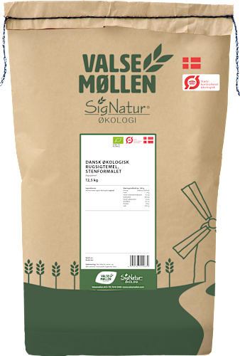 Rugsigtemel, Stenform. Dansk Øko med dansk oprindelse er rugmel, hvor alle skaldele er sigtet fra. Brug det til rugbrød med god volumen og til at give smag, farve og saftighed til dine hvedebrød. Valsemøllen Signatur® er grundstenen i godt bagværk. Serien består af et bredt sortiment af dansk og økologisk mel, gryn, specialmel og melblandinger, der sikrer lækkert, vellykket bagværk – hver gang. Det er produkter af allerhøjeste kvalitet, der er dyrket efter økologiske principper og malet på en af vores tre danske møller.